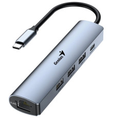 გადამყვანი Genius 5-in-1 USB 3.0 Hub with Gigabit Ethernet